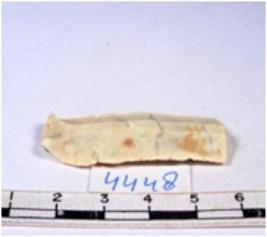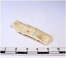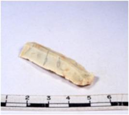 | Description / विवरण | A fragment of a rectangular shaped chert blade showing dorsal sides with sharp cutting edges having smooth surface and triangular section. |