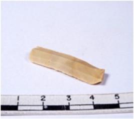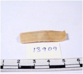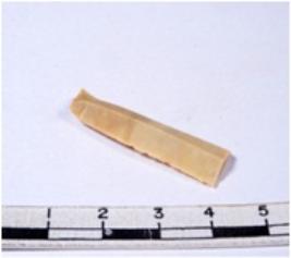 | Description / विवरण | A fragment of a rectangular shaped chert blade showing dorsal sides with sharp edges having smooth surface and triangular section. |