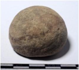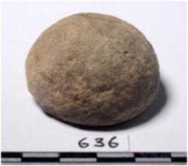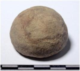 | Description / विवरण | A fragment of a terracotta ball, round in shape of rough surface. |