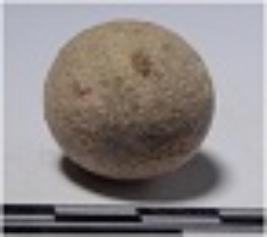 | Description / विवरण | A stone sling ball, round in shape of rough surface. |