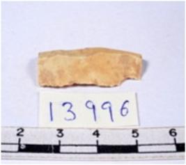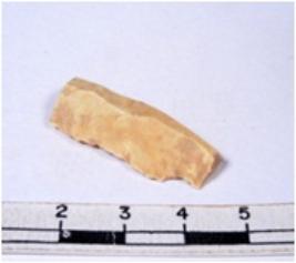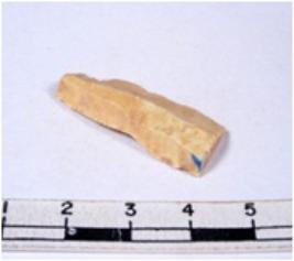 | Description / विवरण | A fragment of a rectangular shaped chert blade showing dorsal sides with sharp cutting edges having smooth surface and triangular section. |