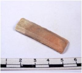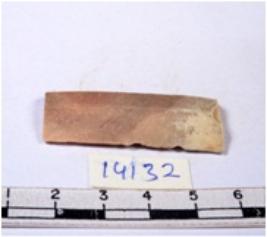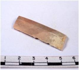 | Description / विवरण | A fragment of a rectangular shaped chert blade showing dorsal sides with sharp cutting edges having smooth surface and triangular section. |