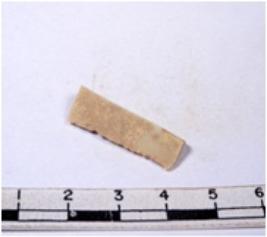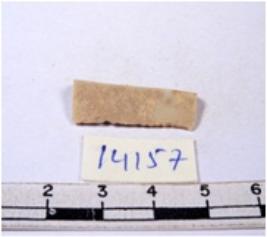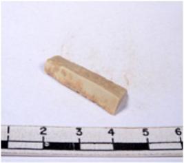 | Description / विवरण | A fragment of a rectangular shaped chert blade showing dorsal sides with sharp cutting edges having smooth surface and triangular section. |