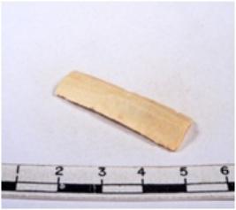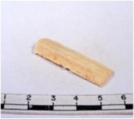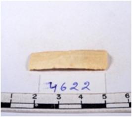 | Description / विवरण | A fragment of a rectangular shaped chert blade showing dorsal sides with sharp cutting edges having smooth surface and triangular section. |
