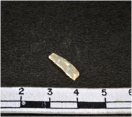 | Description / विवरण | A fragment of a rectangular shaped chalcedony blade showing dorsal sides with sharp edges having smooth surface and triangular section. |