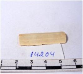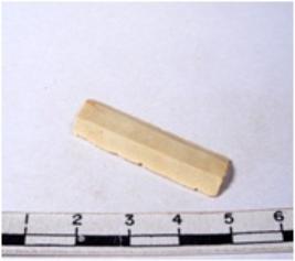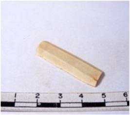 | Description / विवरण | A fragment of a rectangular shaped chert blade showing dorsal sides with sharp edges having smooth surface and triangular section. |
