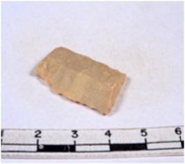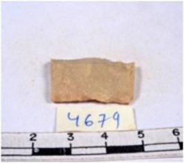 | Description / विवरण | A fragment of a rectangular shaped chert blade showing dorsal sides with sharp cutting edges having smooth surface and triangular section. |