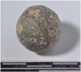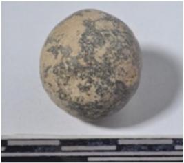| Description / विवरण | A stone small sling ball round in shape of smooth surface. |