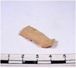 | Description / विवरण | A fragment of a rectangular shaped chert blade showing dorsal sides with sharp edges having smooth surface and triangular section. |