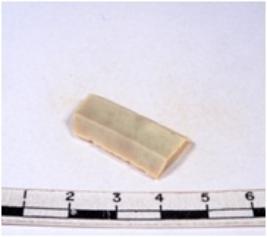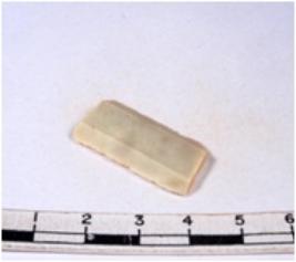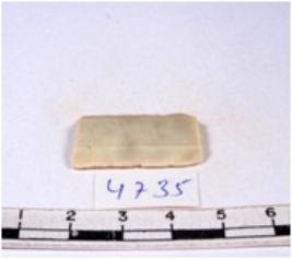 | Description / विवरण | A fragment of a rectangular shaped chert blade showing parallel sides with sharp edges having smooth surface and uneven section. |