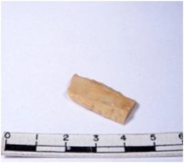 | Description / विवरण | A fragment of a rectangular shaped chert blade showing dorsal sides, with sharp edges having smooth surface and triangular section. |