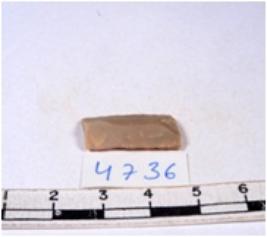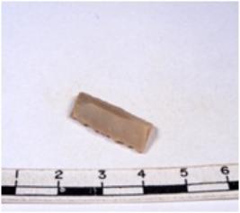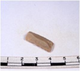 | Description / विवरण | A fragment of a rectangular shaped chert blade showing dorsal sides with sharp cutting edges having smooth surface and triangular section. |