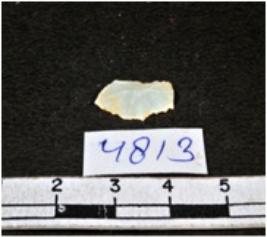 | Description / विवरण | A fragment of a rectangular shaped chert blade showing dorsal sides with sharp cutting edges having smooth surface and triangular section. |