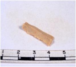 | Description / विवरण | A fragment of a rectangular shaped chert blade showing dorsal sides with sharp edges having smooth surface and triangular section. |