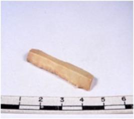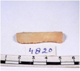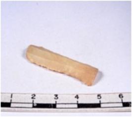 | Description / विवरण | A fragment of a rectangular shaped chert blade showing dorsal sides with sharp edges having smooth surface and triangular section. |