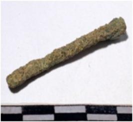 | Description / विवरण | A fragment of a copper rod broken from both edges circular in section of rough surface. |