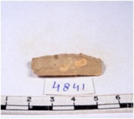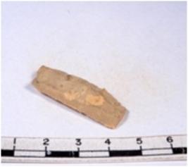 | Description / विवरण | A fragment of a rectangular shaped chert blade showing sides with sharp cutting edges having smooth surface and triangular section. |