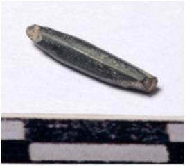 | Description / विवरण | A fragment of a stone drill bit circular in section pointed on one end of smooth surface. |