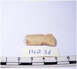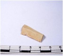 | Description / विवरण | A fragment of a rectangular shaped chert blade showing dorsal sides with sharp edges having smooth surface and triangular section. |