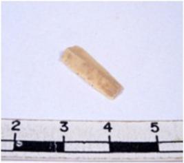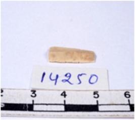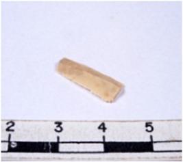 | Description / विवरण | A fragment of a rectangular shaped chert blade showing dorsal sides with sharp cutting edges having smooth surface and triangular section. |
