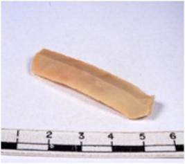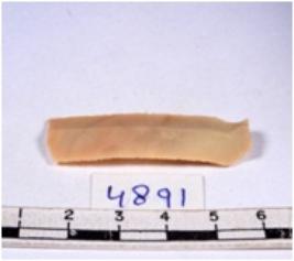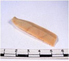 | Description / विवरण | A fragment of a rectangular shaped chert blade showing dorsal sides with sharp cutting edges having smooth surface and triangular section. |