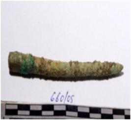 | Description / विवरण | A copper rod, pointed one end circular in section of rough surface. |