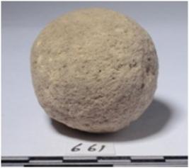 | Description / विवरण | A stone sling ball round in shape of rough surface. |
