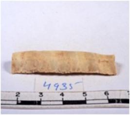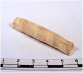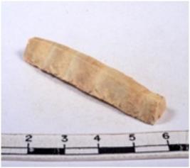 | Description / विवरण | A fragment of a rectangular shaped chert blade showing dorsal sides with sharp edges having smooth surface and triangular section. |