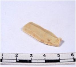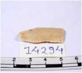 | Description / विवरण | A fragment of a rectangular shaped chert blade showing parallel sides with sharp cutting edges having smooth surface and triangular section. |