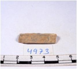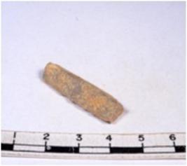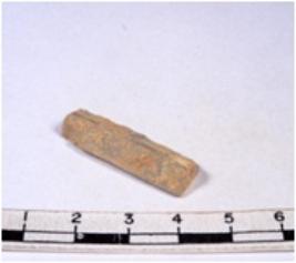 | Description / विवरण | A fragment of a rectangular shaped chert blade showing dorsal sides with sharp edges having smooth surface and triangular section. |
