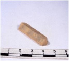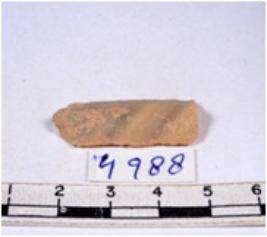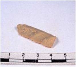 | Description / विवरण | A fragment of a rectangular shaped chert blade showing dorsal sides with sharp edges having smooth surface and triangular section. |