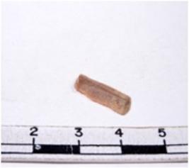 | Description / विवरण | A fragment of a rectangular shaped chert blade showing dorsal sides with sharp cutting edges having smooth surface and triangular section. |