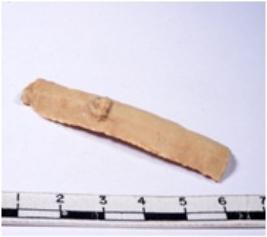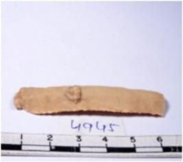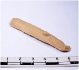 | Description / विवरण | A fragment of a rectangular shaped chert blade showing dorsal sides with sharp edges having smooth surface and triangular section. |