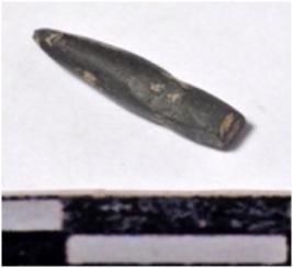 | Description / विवरण | A fragment of a stone drill bit, circular in section broken both end of smooth surface. |