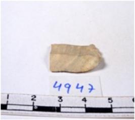 | Description / विवरण | A fragment of a rectangular shaped chert blade showing dorsal sides with sharp edges having smooth surface and triangular section. |