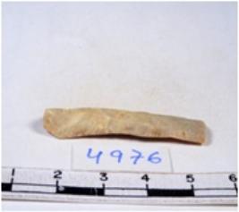 | Description / विवरण | A fragment of a rectangular shaped chert blade showing parallel sides with sharp edges having smooth surface and uneven section. |