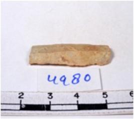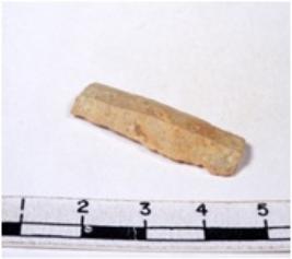 | Description / विवरण | A fragment of a rectangular shaped chert blade showing dorsal sides with sharp edges having smooth surface and uneven section. |