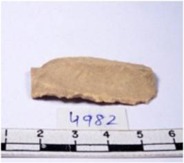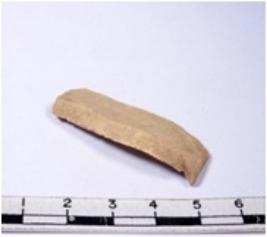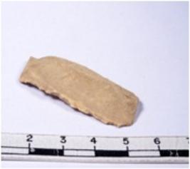 | Description / विवरण | A fragment of a rectangular shaped chert blade showing parallel sides with sharp edges having smooth surface and uneven section. |