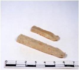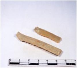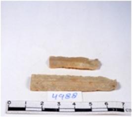 | Description / विवरण | A fragment of a rectangular shaped chert blade showing dorsal sides with sharp edges having smooth surface and triangular section. |