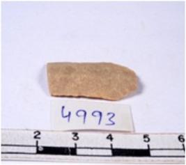 | Description / विवरण | A fragment of a rectangular shaped chert blade showing dorsal sides with sharp edges having smooth surface and triangular section. |
