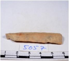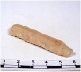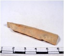 | Description / विवरण | A fragment of a rectangular shaped chert blade showing dorsal sides with sharp edges having smooth surface and triangular section. |