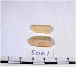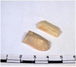 | Description / विवरण | A fragment of a rectangular shaped chert blade showing dorsal sides with sharp edges having smooth surface and uneven section. |