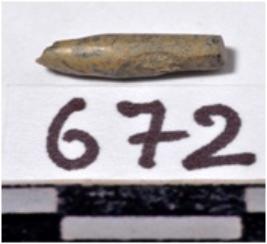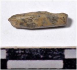| Description / विवरण | A fragment of a stone drill bit, circular in section, broken from both end of smooth surface. |