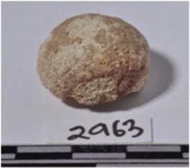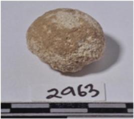 | Description / विवरण | A fragment of a sling ball, circular in section of rough surface. |