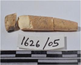 | Description / विवरण | A fragment of a bone point having pointed one side circular in section of smooth surface. |