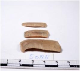 | Description / विवरण | A fragment of a rectangular shaped chert blade showing dorsal sides with sharp edges having smooth surface and triangular section. |