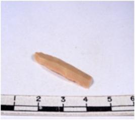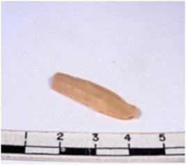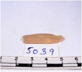 | Description / विवरण | A fragment of a rectangular shaped chert blade showing dorsal sides with sharp cutting edges having smooth surface and triangular section. |