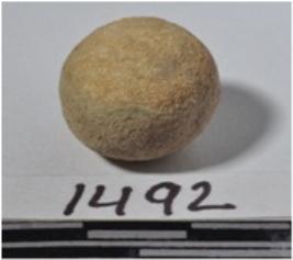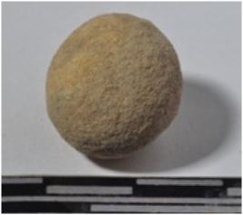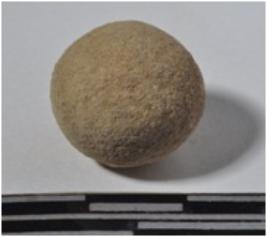 | Description / विवरण | A stone sling ball, round in shape of rough surface. |
