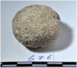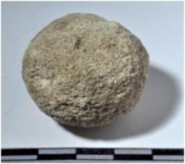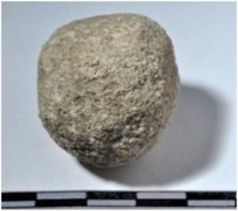| Description / विवरण | A stone sling ball round in shape of rough surface. |