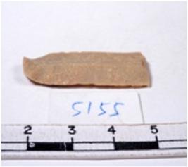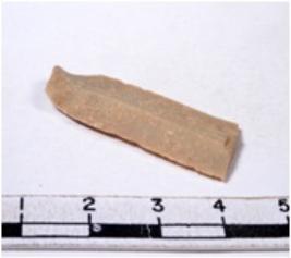 | Description / विवरण | A fragment of a rectangular shaped chert blade showing dorsal sides with sharp edges having smooth surface and triangular section. |
